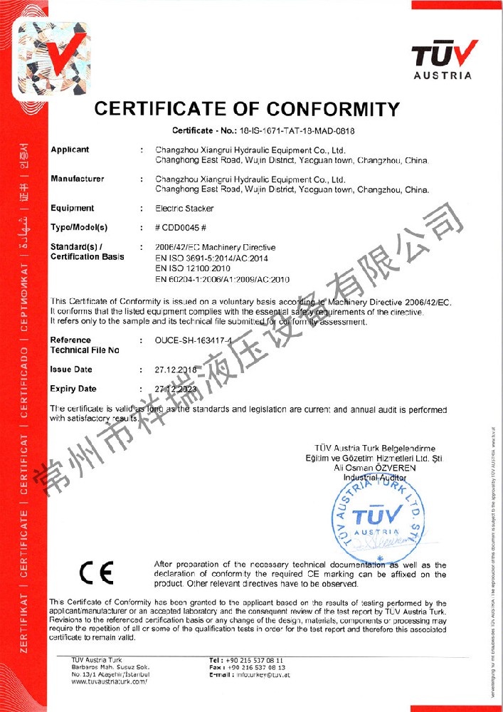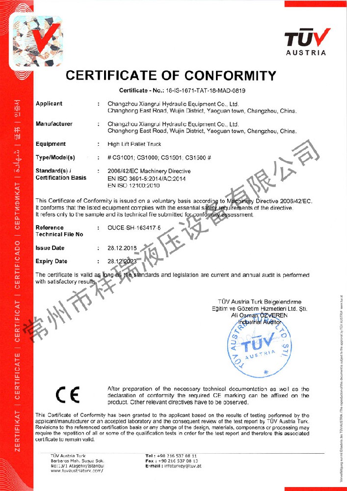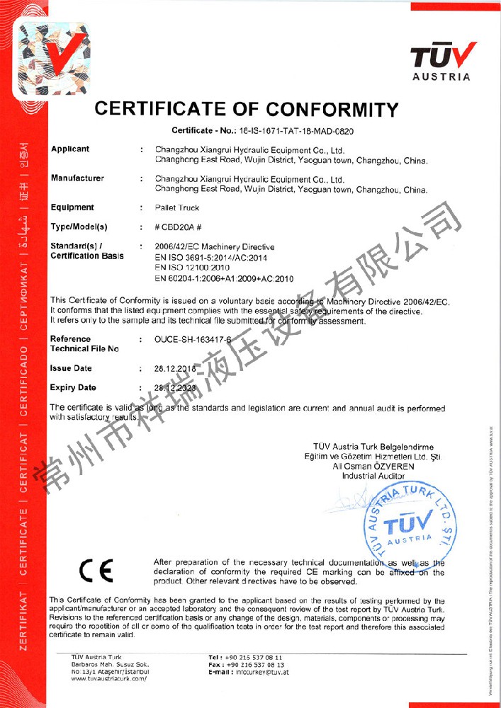 祥瑞液压·CE证书